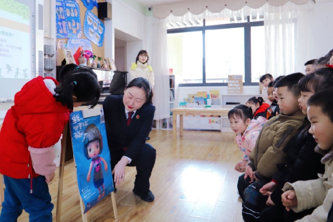 雷蕾走进四川省南充市白土坝幼儿园,为孩子们讲授防性侵课程。