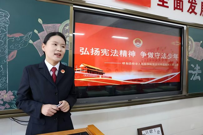 王燕妮走进内蒙古自治区呼和浩特市赛罕区银河小学,为师生讲授法治课。