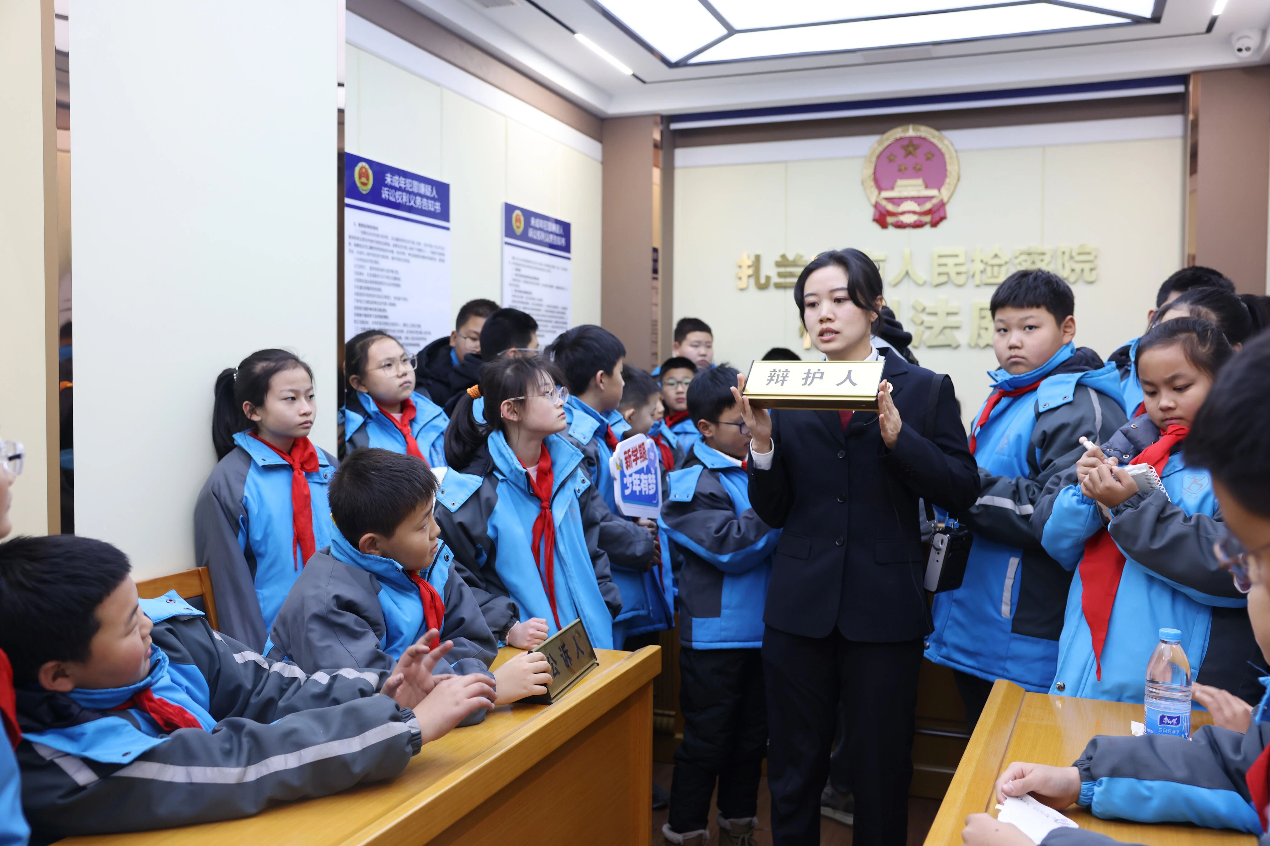 近日,扎兰屯市检察院举办“探寻法治真谛 播撒法治种子”检察开放日活动,邀请扎兰屯市文化小学的同学们走进“青葵”未检青少年法治教育基地,开展了一场沉浸式、互动式的法治学习体验。