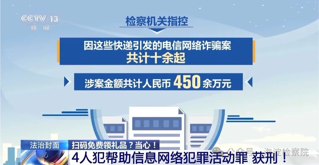 明明没有网购,却收到了快递,里面是促销宣传单或是中奖小卡片,一旦扫了上面的二维码,就很可能会陷入骗局。北京市海淀区人民法院就审理了这样一起案件。来自全国各地的十几名被害人共计被骗450多万元。